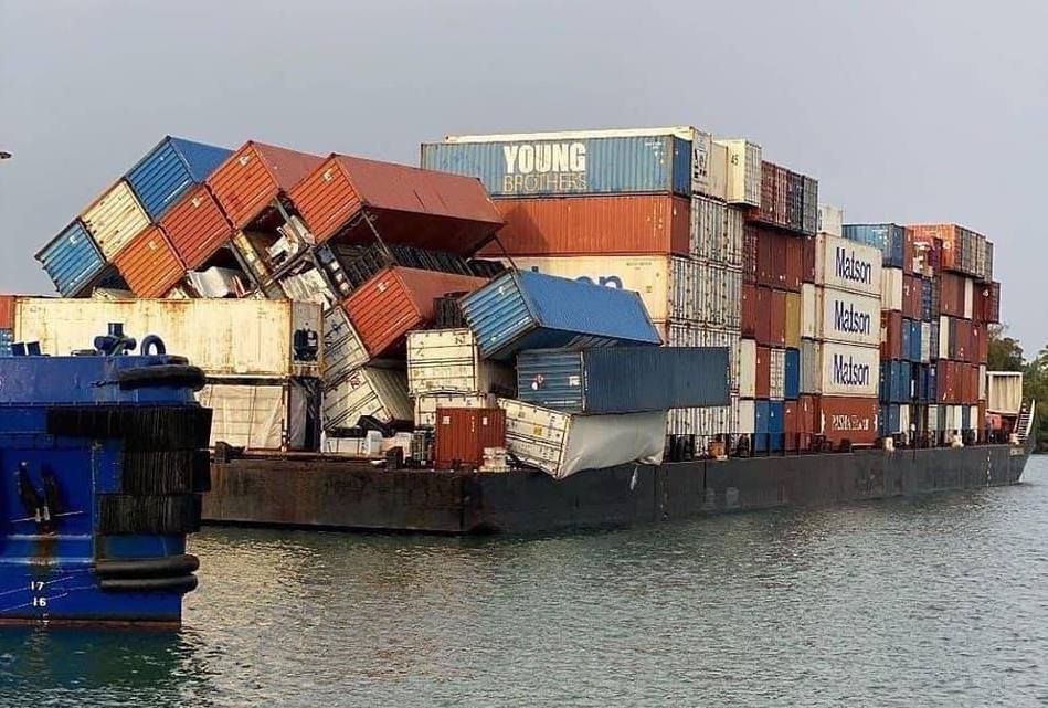 Accordingly, if Members operate a deck barge in a domestic trade where the provision and use of a CSM is not mandatory then, if their barge is carrying general cargo and/or containers, MM recommends that it be provided with a CSM which has been prepared by a naval architect and which complies with relevant IMO and SOLAS Guidelines. If this is not done, then the result may well be as depicted in the adjacent photo or much worse.