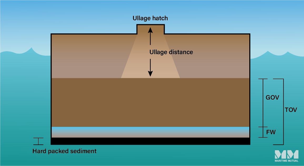 The ullage measurement is used to enter a set of pre-calculated tank volume quantity tables supplied by the shipbuilder or shore tank constructor. These tables provide the Total Observed Volume (TOV) in cubic metres of the BLC – inclusive of cargo, free water (FW), entrained sediment and water (S&W) and bottom sediment – in each cargo tank at the BLC’s observed temperature as measured by a thermometer.