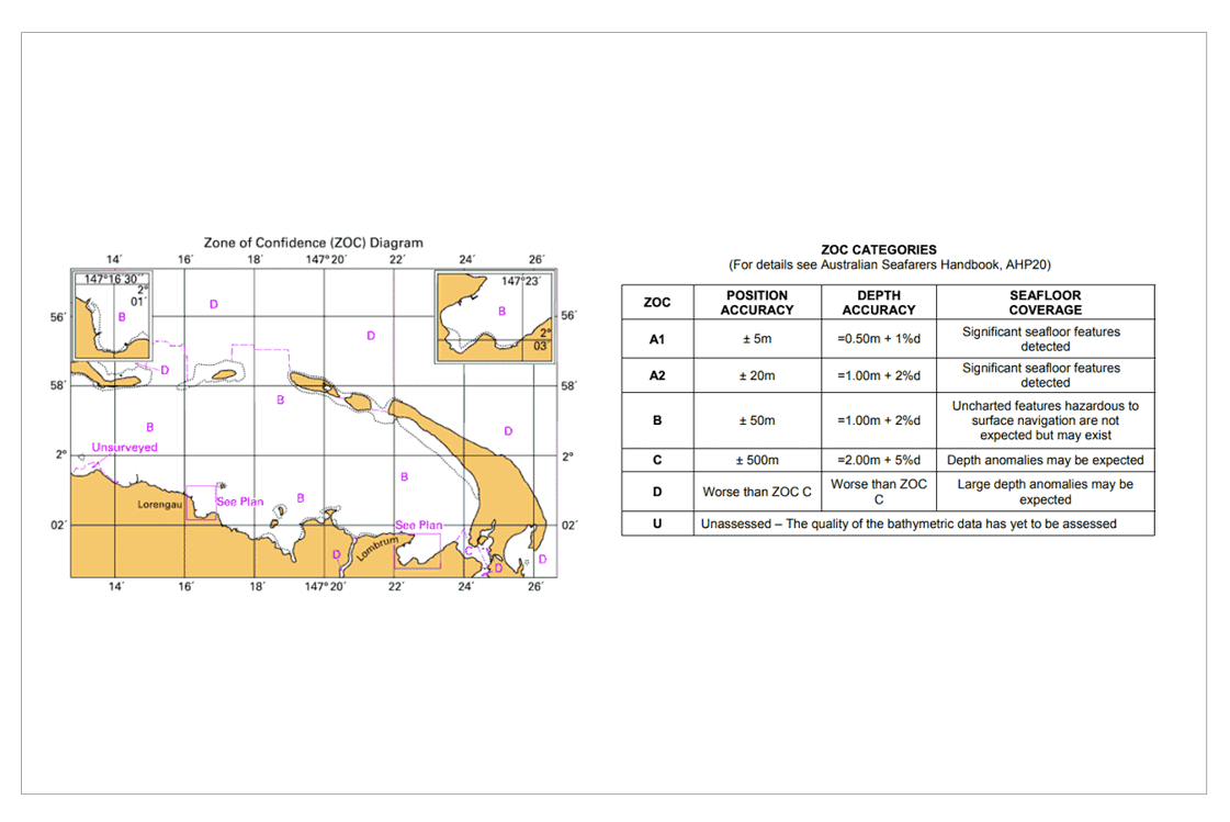 It can be seen that Categories A1, A2 and B indicate the highest levels of chart reliability and confidence. On the other hand, Categories C, D and U indicate that, in sequence, caution, extreme caution and ‘no go’ should be exercised.